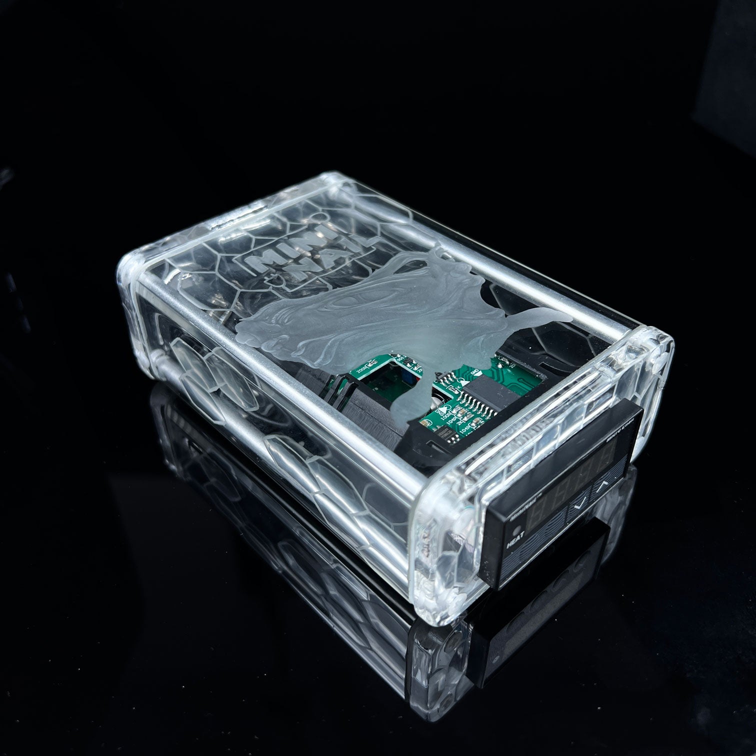A MiniNail Enail made completely from Boro Glass. These MiniNail's feature Individually Hand Etched Artwork by popular Hungarian artist Toth Tibor Tamas; making each box unique, one of a kind, and limited. A very intricate process of meshing Glass & Electronics with aesthetic. Handmade in Seattle, WA USA. The thick walls and shape allows for it to be durable for everyday use.