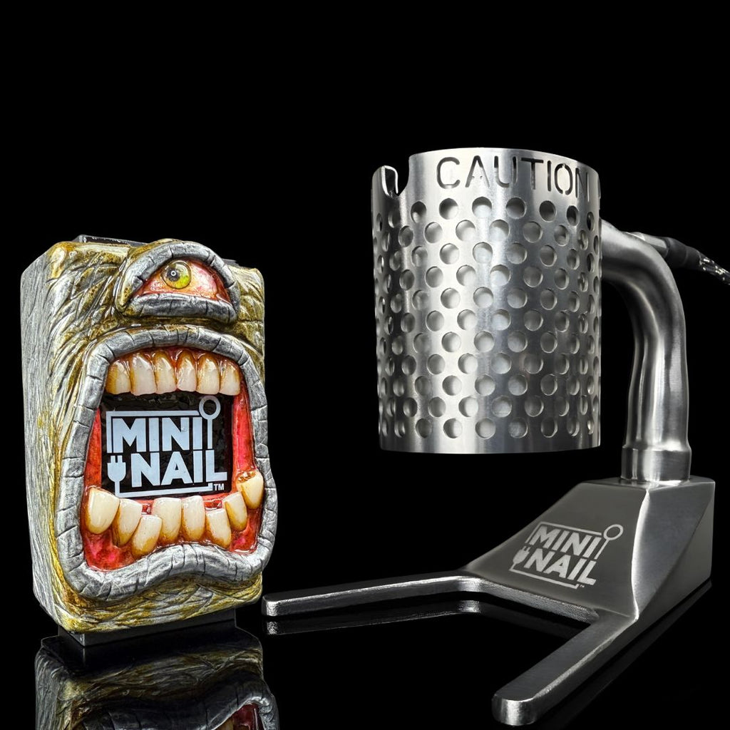 These Custom/Limited Edition Coil Caddy Sets are handcrafted by MiniNail and the amazing special effects artists Moldy.Creations based in Hollywood, California. These unique and custom MiniNail Enail sets feature detailed artwork around the controller box. Has the look and feel of a movie prop. The perfect addition to any coffee table or dab station. Each design is handmade using polymer clay and is hand painted with acrylic paints. These are very durable and will stand up to minor drops and scratches. The entirety of the design is coated with a high gloss protective glaze to make it last!