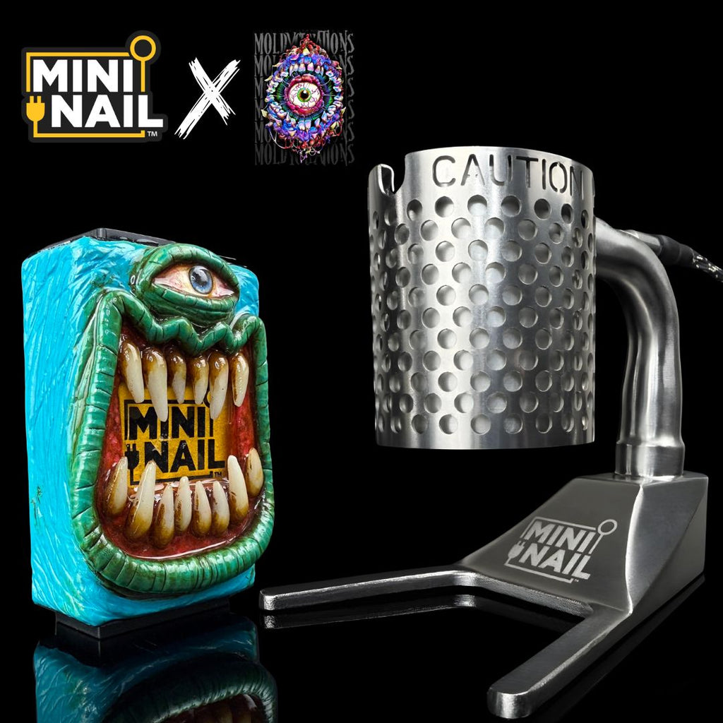 These Custom/Limited Edition Coil Caddy Sets are handcrafted by MiniNail and the amazing special effects artists Moldy.Creations based in Hollywood, California. These unique and custom MiniNail Enail sets feature detailed artwork around the controller box. Has the look and feel of a movie prop. The perfect addition to any coffee table or dab station. Each design is handmade using polymer clay and is hand painted with acrylic paints. These are very durable and will stand up to minor drops and scratches. The entirety of the design is coated with a high gloss protective glaze to make it last!