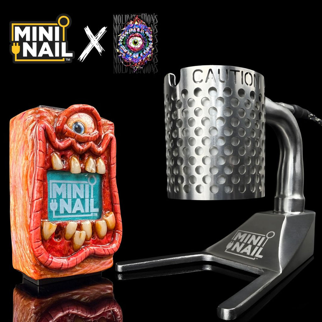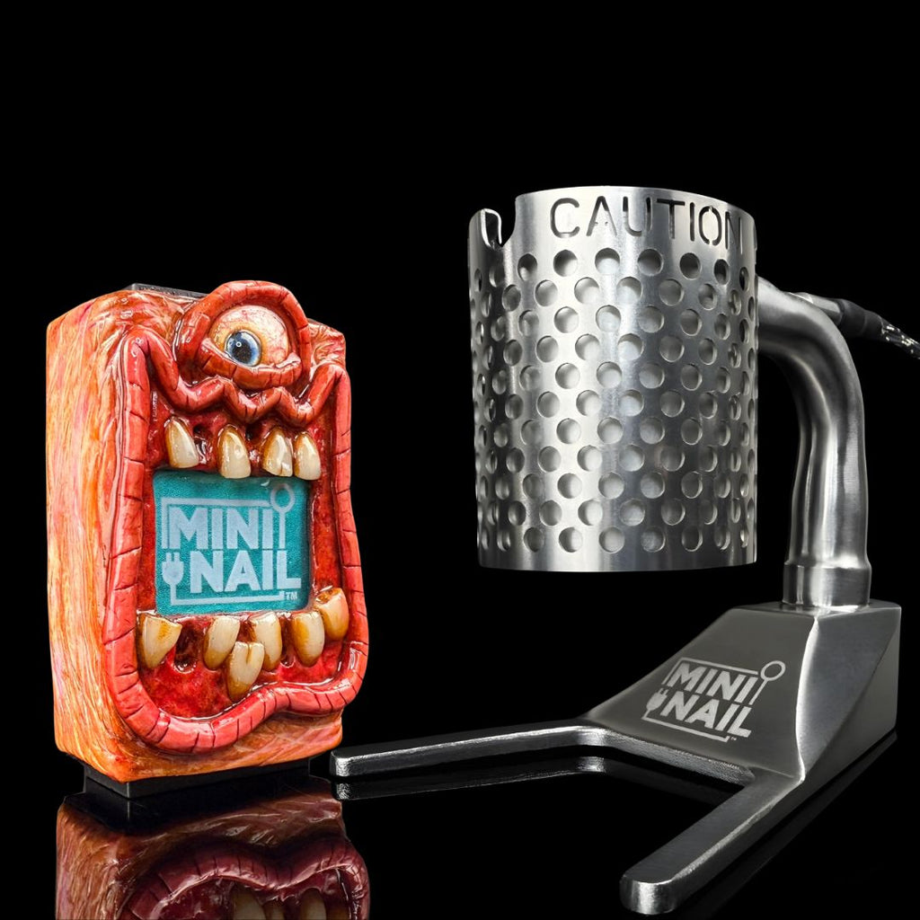 These Custom/Limited Edition Coil Caddy Sets are handcrafted by MiniNail and the amazing special effects artists Moldy.Creations based in Hollywood, California. These unique and custom MiniNail Enail sets feature detailed artwork around the controller box. Has the look and feel of a movie prop. The perfect addition to any coffee table or dab station. Each design is handmade using polymer clay and is hand painted with acrylic paints. These are very durable and will stand up to minor drops and scratches. The entirety of the design is coated with a high gloss protective glaze to make it last!